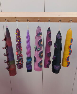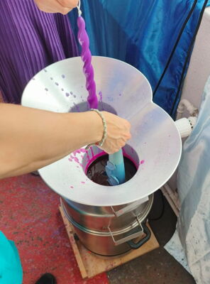 Wir dürfen heute Nachmittag in die Kerzenküche. Dort stehen viele Töpfe mit Wachs in verschiedenen Farben. Die Auswahl ist gross, wir können gedrehte Kerzen machen, eine kleine oder eine etwas grössere… Mit viel Geduld halten wir den Docht in das heisse Wachs und kühlen diesen danach im Wasser ab. Dann ist es wichtig, dass die Kerze ganz gut abgetrocknet wird, bevor wir sie erneut in das Wachs tauchen. Am Schluss sind wunderschöne Kunstwerke entstanden, die wir mit viel Freude verschenken oder selber behalten dürfen.