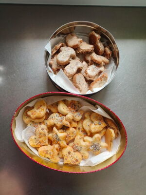 Am Mittwochnachmittag machen wir Guetzli. Wir haben Mailänderli, Zimtsterne, Vanillegipfeli und sogar Schoko-Vanilleguetzliteig auf der Wohngruppe. Jetzt können wir natürlich zuerst unseren Lieblingsteig auswallen und mit vielen verschiedenen Förmli ausstechen. Danach gehen die Monde, Sternen, Pilze und Renntiere aufs Blech, werden schön dekoriert und ab in den Ofen. Mmh, riecht das fein. Zum Zvieri dürfen wir die Guetzli dann bereits probieren, den Geschmackstest haben sie klar bestanden. :-)
